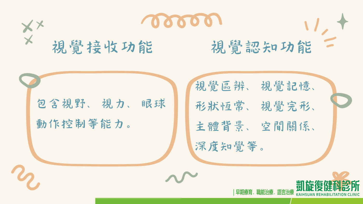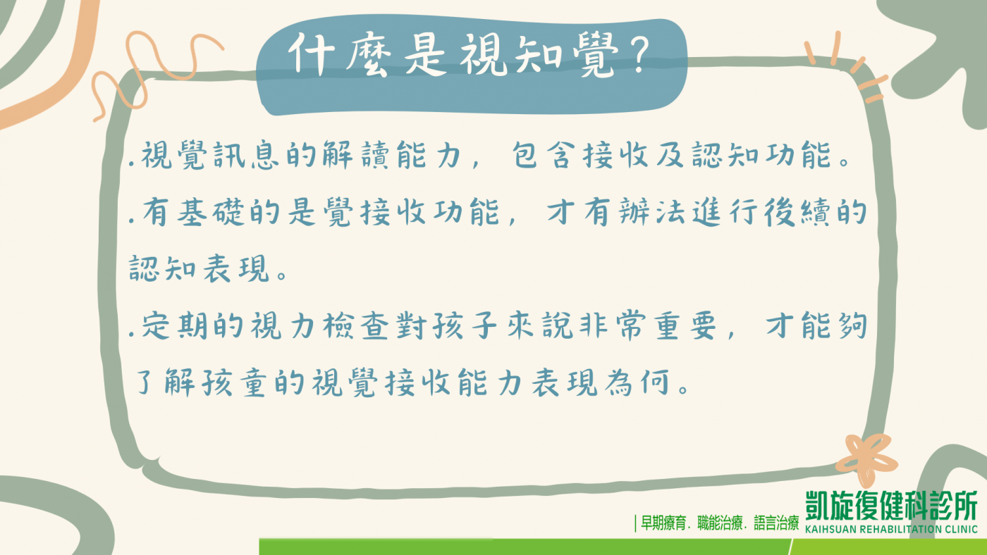 日常生活中有許多技巧都與視知覺能力有關;包含形狀、物體、顏色和其他的特性的辨認和認識~