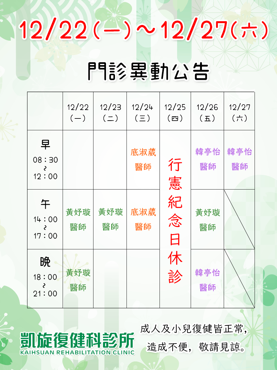 【12月門診異動公告】