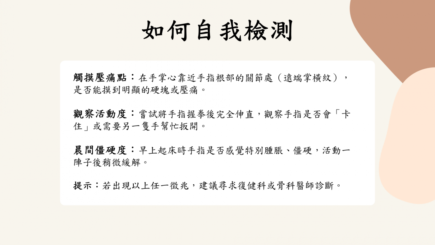 你是否曾經在彎曲或伸直手指時,感覺手指卡住、需要用力才能拉直,甚至伴隨疼痛?
