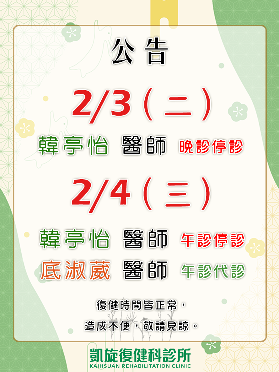 【02月門診異動公告】