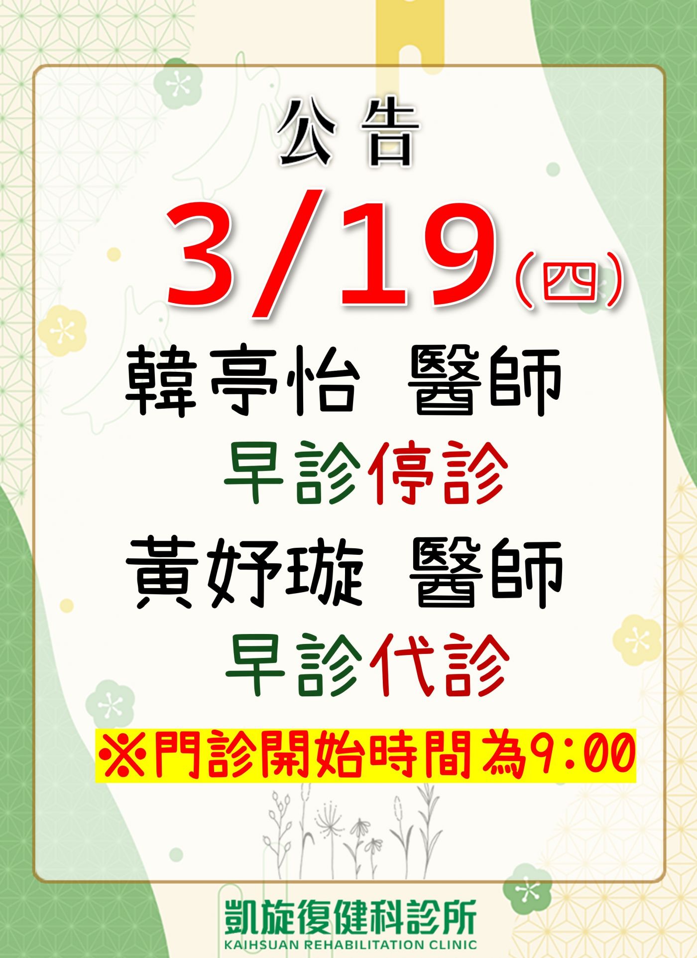 【03月門診異動公告】