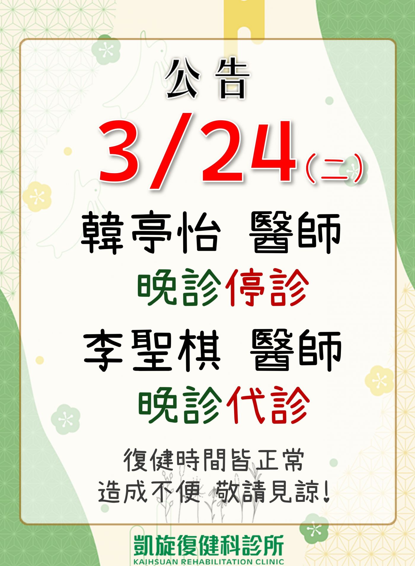 【03月門診異動公告】