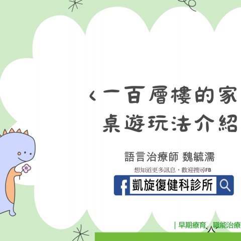 〈一百層樓的家〉桌遊玩法介紹 圖/文:語言治療師 魏毓濡 這個月要來介紹的是一款常見的桌遊,叫做一百層樓的家,語言老師魏老師舉出了三個不同的玩法,分別可以訓練到不同的能力,如:聽覺注意力、記憶力、語言表達等等,爸爸媽媽可以參考看看,回家陪著孩子們一同遊玩,若有問題也都可...