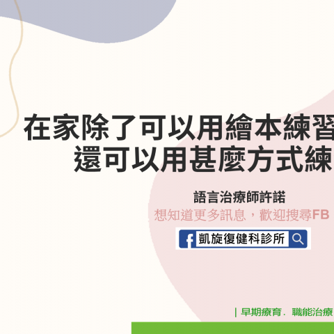 在家除了可以用繪本練習語言能力,還可以用甚麼方式練習呢? 圖/文:語言治療師 許諾   小朋友們在家是否聽繪本聽膩了呢?或者小朋友的注意力無法集中較長時間,導致一本書還沒看完就跑走了呢?又或者孩子經常迫切想要知道繪本的後續劇情而不斷翻頁,無法與家長一起共讀,以致練習時間較...