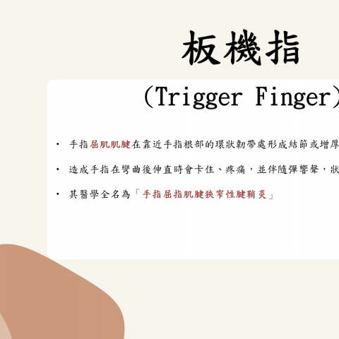 你是否曾經在彎曲或伸直手指時,感覺手指卡住、需要用力才能拉直,甚至伴隨疼痛? 這很可能不是單純的疲勞,而是「板機指」正在悄悄影響你的手部健康。 圖/文:葉乃瑄 物理治療師